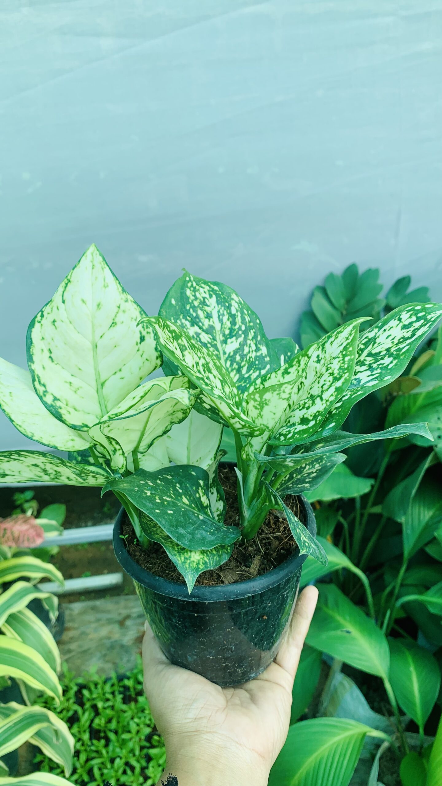Aglonema green in a nursery pot