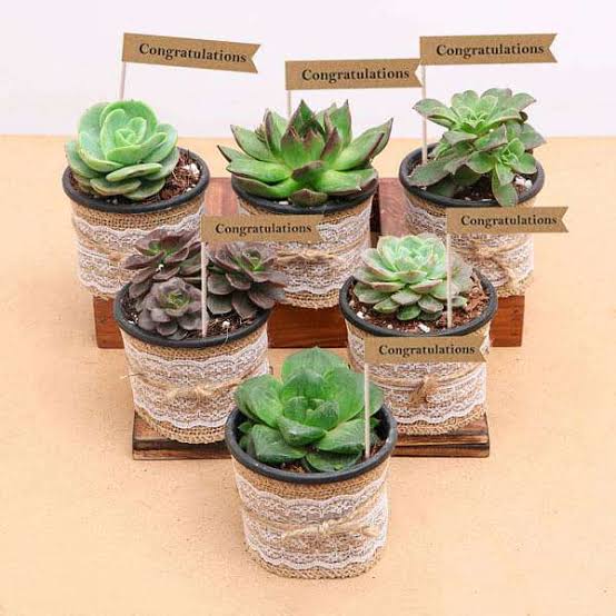 Decorated pack of 6 succulents in nursery pot for gifting